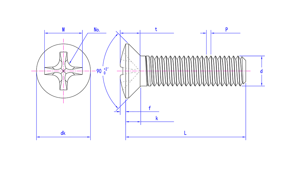 Vít đầu phẳng chìm DIN965 90° với kiểu H chìm chéo