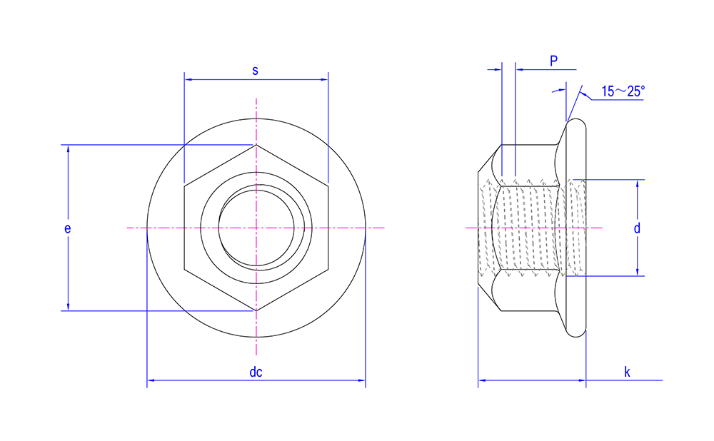 | Ưu điểm và tính năng | Ren kim loại bên trong, với mặt bích phi kim loại được thêm vào bên ngoài để cung cấp chức năng khóa và ổn định Được sử dụng để buộc chặt các kết nối yêu cầu chức năng khóa và ổn định |