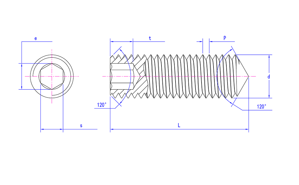 Bộ ốc vít lục giác bằng thép không gỉ DIN915 có điểm chó