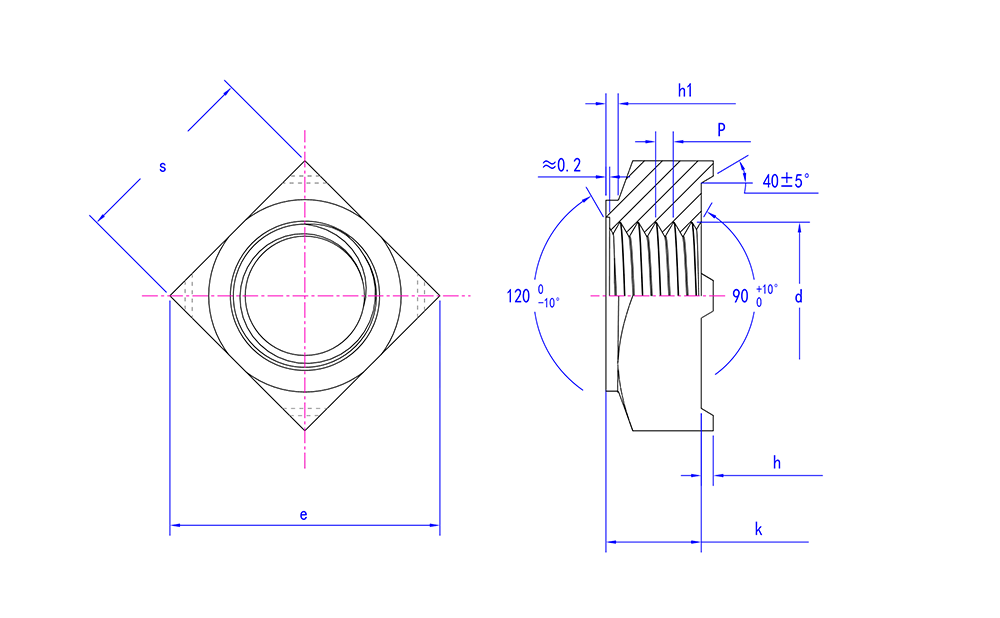 | Tính năng bên trong | Ren trong tiêu chuẩn, hình vuông bên ngoài, có thể hàn vào kết cấu |
